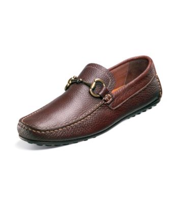 Shoes. Go forth in the assured comfort of this handsome milled-leather driving moc with a burnished hardware detail. Featured in Brown Milled leather upper Metallic bit strap detail Fully cushioned footbed Rubber outsole Imported
